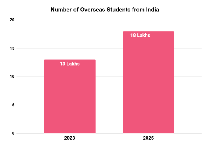 - Over 18 lakh Indian students were studying abroad as of 2025, with outbound education spending projected to reach $70 billion. A growing share of these students now comes from Tier-2 and Tier-3 cities.