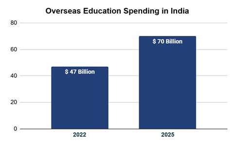 With more than 18 lakh Indian students studying abroad as of 2025, up from 13 lakhs in 20231, India remains one of the largest source countries for international education globally. The student outflows continue at record levels, with outbound spending reaching ~$47 billion in 2022 and estimated at $70 billion by 20252.