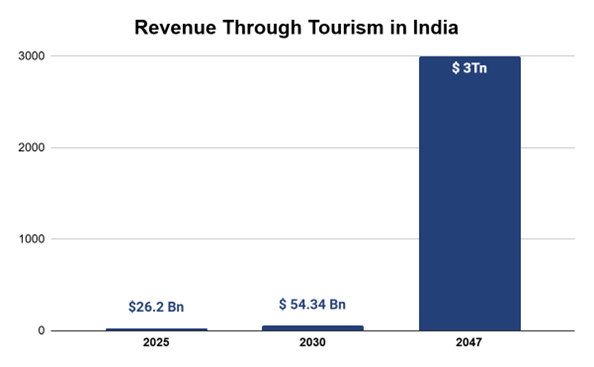 The travel and tourism market in India is estimated to generate US $26.24 billion in revenue in 2025, and with a projected CAGR of 15.67% between 2025 and 2030, it is expected to reach a market size of US $54.34 billion by 20301 and US $3 trillion by 20472. While these numbers highlight growth potential, it is important to recognize that the real drivers of India’s tourism experience are not limited to luxury hotels or large travel operators. Instead, MSMEs form the backbone of the tourism ecosystem. They run local hotels, operate taxis, manage tour packages, craft souvenirs, and even build digital booking systems.